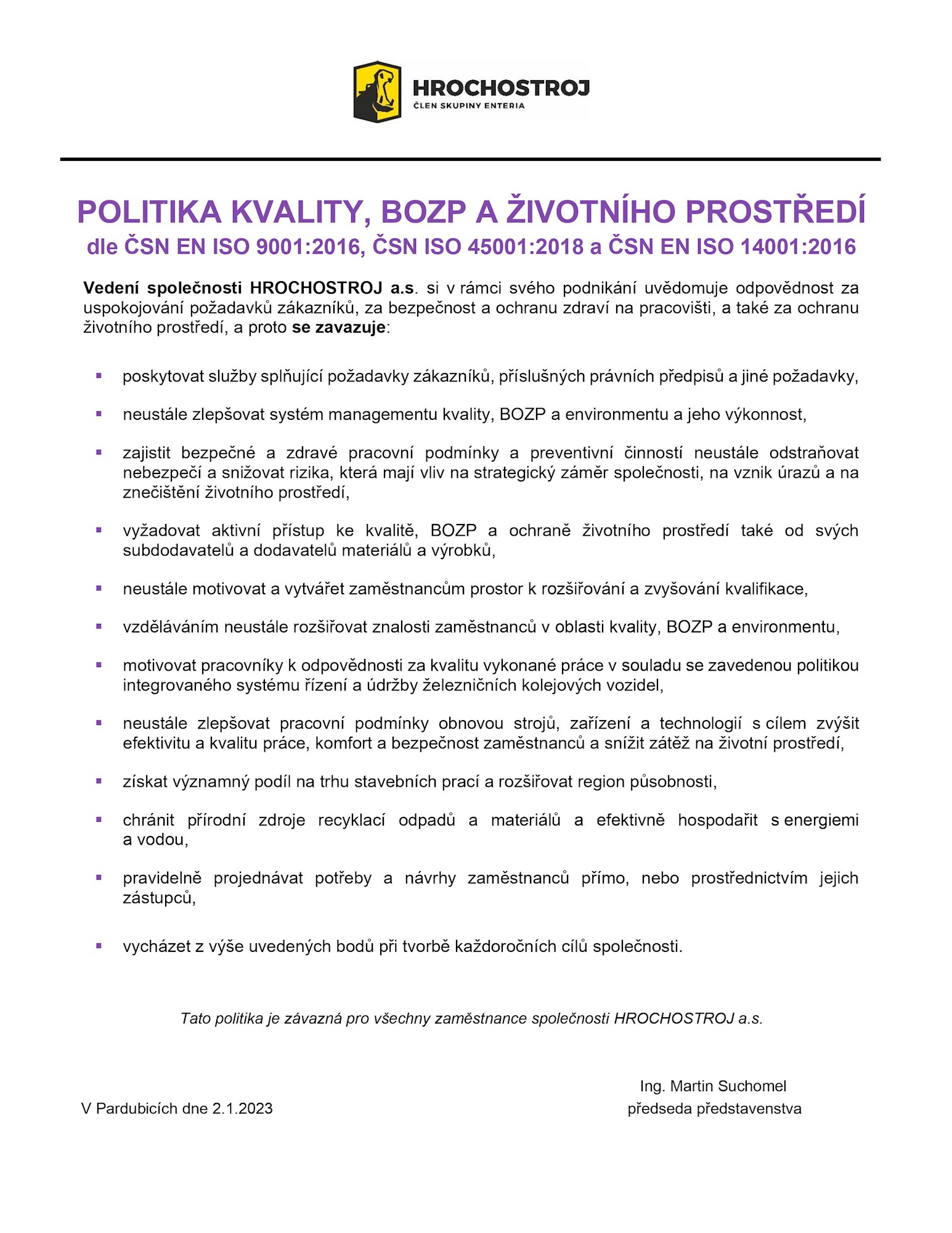Osvědčení o způsobilosti k broušení pojížděných součástí výhybek - Správa železnic