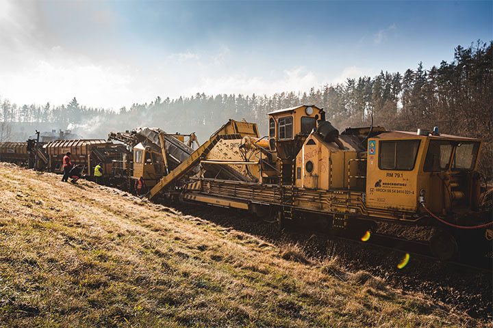 We founded Hrochostroj in 2015 under the wings of the enteria holding. The goal, which we have been successfully fulfilling for a long time, is to take the position of a strong partner in the field of heavy rail mechanization on the railway market. Hrochostroj's fleet includes 12 specialized machines, such as ballast tampers for directional and height adjustment of tracks and switches, ballast plows for ballast bed treatment/adjustment, track bed cleaners with subsequent removal of excavated material and more.